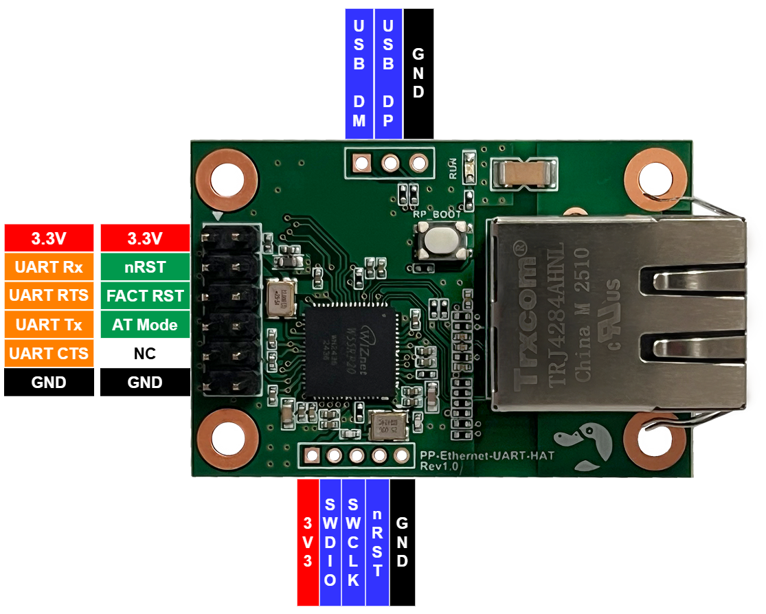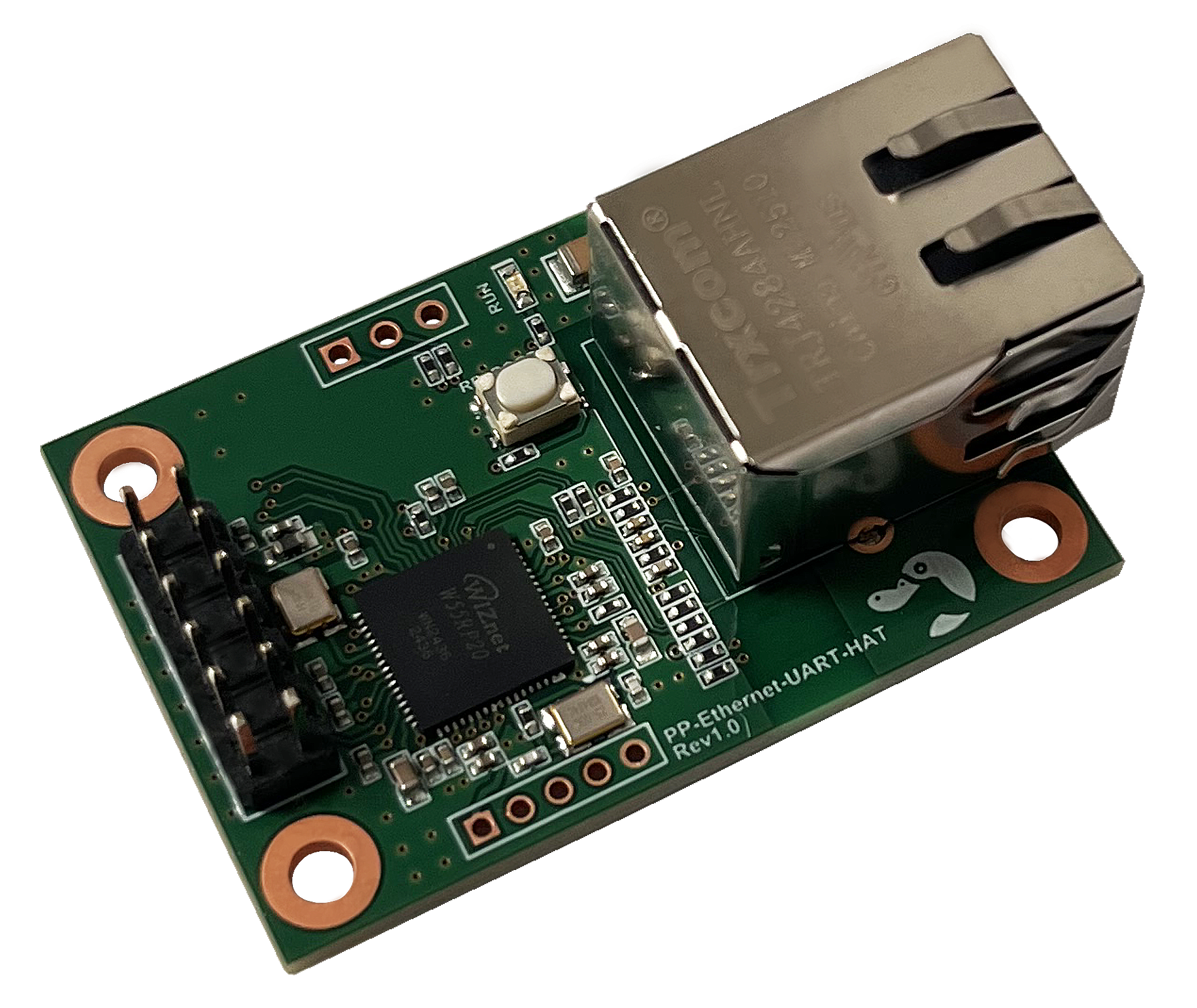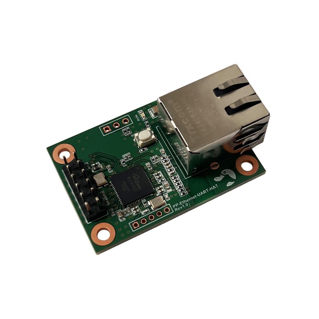 PP-Ethernet-UART-HAT は、コンパクトながら高性能な Ethernet–UART 変換モジュールです。WIZnet社の高機能Ethernet変換チップ W55RP20 を搭載しています。